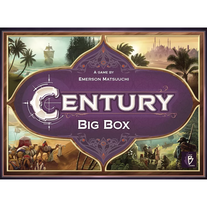 The Century game series, comprising Spice Road, Eastern Wonders, and A New World, along with their corresponding promo items and a fresh mini-expansion called Golden Deals, are all included in the Century Big Box.