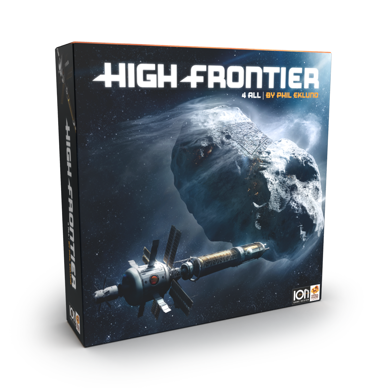 This is the 4th ed of Phil Eklund's signature game High Frontier. It started with Rocket Flight (1979), a game with the vision to let "Each player start as a spacefaring company in the year 2020 trying to make a profit in trade and technology development." Now that we are at that year, High Frontier has evolved into a modular system open to enthusiasts to keep it updated ever farther into the future.