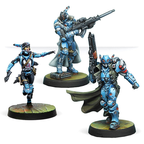 This box includes 3 miniatures for PanOceania: 1 Kamau Hacker, 1 Aquila Guard with HMG and 1 Nisse with MULTI Sniper Rifle. With this box you can expand your options when creating an Army List and continue the PanOceania collection you started with Operation: Kaldstrøm