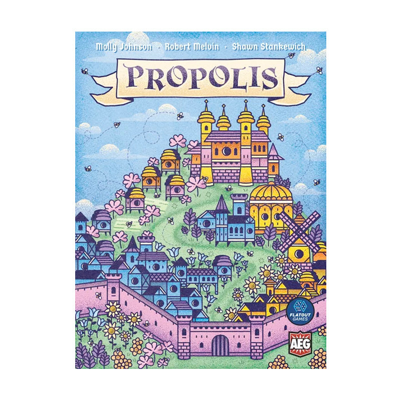 Propolis is a worker-placement, engine-building, area-control, and tableau-building game. Players take on the role of competing medieval bee colonies and take turns deploying worker bees to collect pollen, fortify their positions, and construct their hives to appease their queen and become the most glorious in the land!