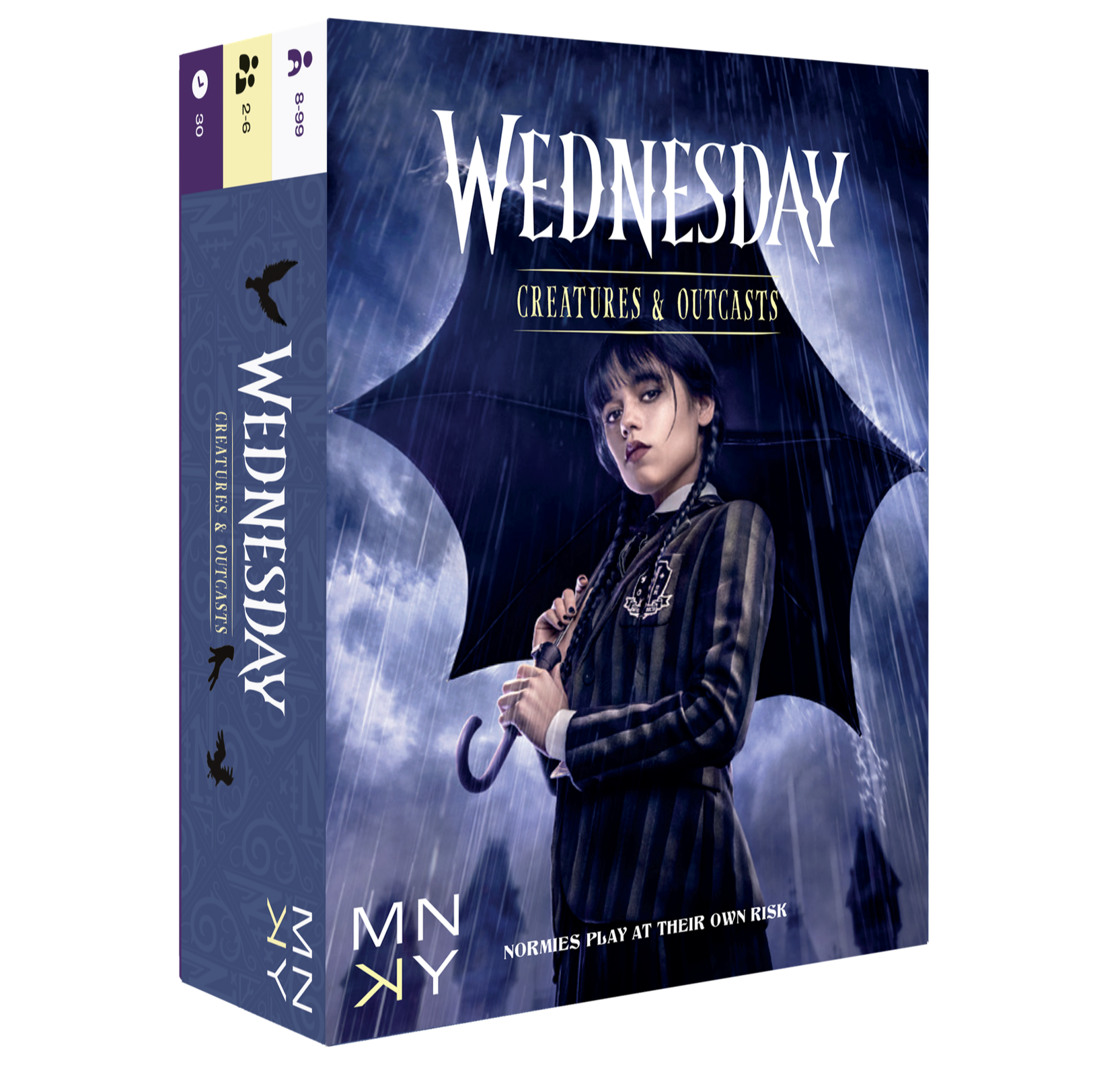 Wednesday: Creatures and Outcasts is a competitive card game for 2–6 players, that captures the magic and absurdity of the hit Netflix show in just 30 mins. Wednesday fans can enjoy a quick and tense card game featuring characters like the siren Bianca Barclay and the werewolf Enid Sinclair.